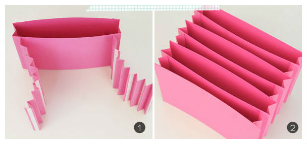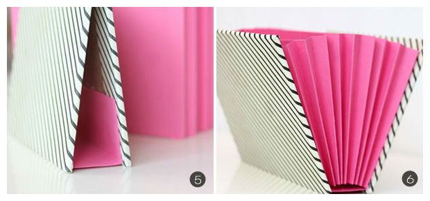 Logo, 7 cartolinas são coladas entre essas dobras, como na imagem acima.