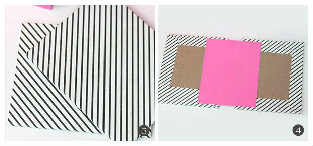 Revista os 2 pedaços de papelão com o papel decorado escolhido.